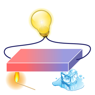 熱電材料とは,熱電現象(ゼーベック効果およびペルチェ効果)を用いて,熱と電気を相互に変換する材料です.ゼーベック効果を利用すると,熱から電力を生み出すことができます.この技術を使うことで,無駄に捨てられている排熱から電力を回収できます.化石燃料の枯渇問題,その燃焼に伴う地球温暖化ガス排出問題,東日本大震災に端を発する電力の価格高騰などの諸問題を大きく緩和させる技術として注目を集めています.しかし,発電効率の問題と利用される材料の価格や危険性の問題から,熱電発電技術は,広く普及するに至っていません.安価で安全な材料を用いて,高い変換効率を有する熱電発電素子の開発が強く望まれています.