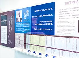 豊田佐吉翁・喜一郎氏の残した名言の数々を紹介し、 国内外の主な出来事と発明・ 発見を紹介する関連年表も設置しています。