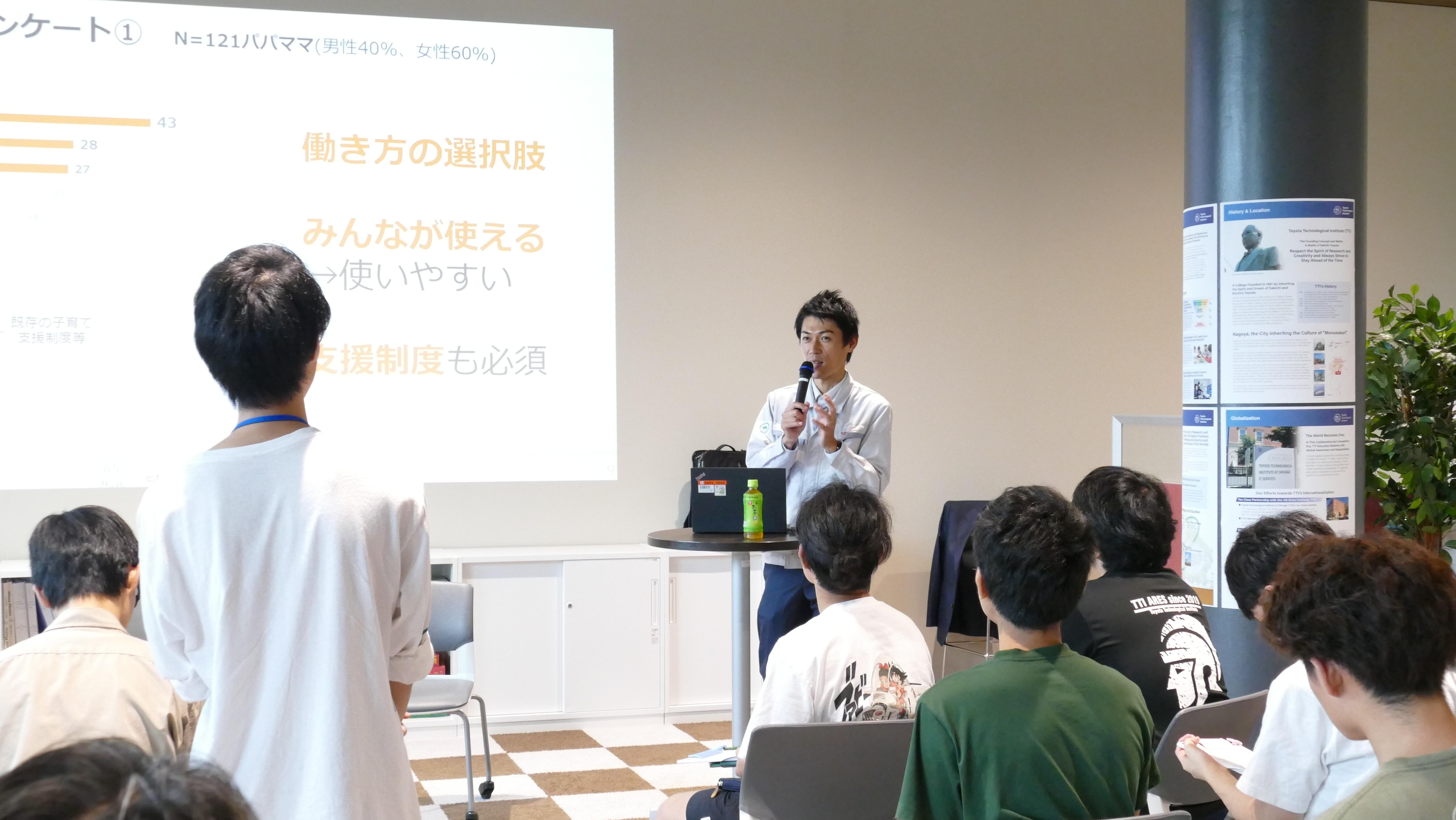 伊藤さんは本学を2007年に卒業、トヨタ自動車へ就職。現在、同社素形材技術部で勤務。2人目のお子様誕生時に、奥様と交代して、約6ヵ月の育休を取得されました。